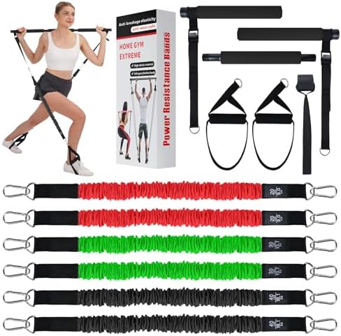 TADAKAZU Pilates Bar Kit with Resistance Bands, Exercise Fitness Equipment for Women & Men, Home Gym Workouts,Portable Pilates Bar Kit Resistance Bands for Women Full Body Workouts