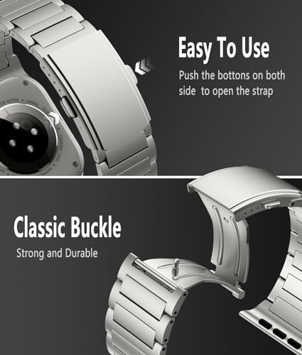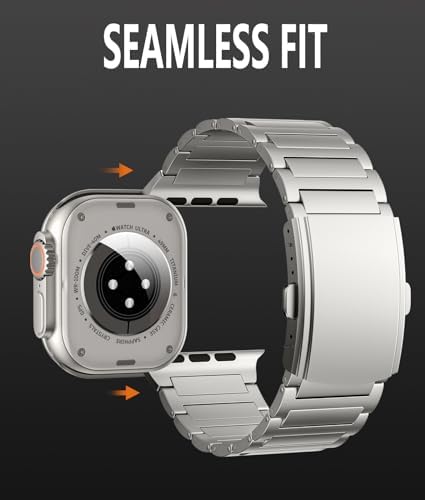 Titanium Band Compatible with Apple Watch Band 49mm 45mm 44mm 42mm 41mm 40mm 38mm Women Men, Durable Titanium Metal Strap for Apple Watch Ultra/Ultra 2 49mm iWatch Series 9 8 7 6 5 4 3 2 1 SE