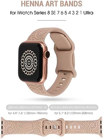 ✅ Owned Patents!: Unique Henna Boho Flowers and Leaf Plants Print Engraved Design: floral engraving bands compatible with Apple watch band 41mm/40mm/38mm or 45mm/44mm/42mm/49mm, Made of the premium soft and durable silicone material, with the advanced laser carving Laser Printed, adjustable strap replacement wristband with classic clasp for iWatch Series 9 SE 8 7 6 5 4 3 2 1 Ultra.