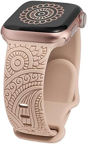 TOYOUTHS Boho Engraved Band Compatible with Apple Watch Band 41mm 40mm 38mm Women Men Girl, Bohemian Designer Sport Soft Silicone Fancy Dressy Fashion Straps for iWatch Series 9/SE/8/7/6/5/4/3/2/1