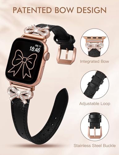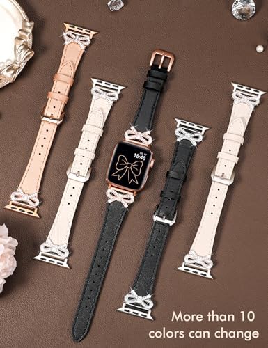 TOYOUTHS Butterfly Bow Leather Band Compatible with Apple Watch Band 41mm 40mm 38mm 49mm 45mm 44mm 42mm Women, Top Grain Leather Strap Thin Slim Dressy band for iWatch Ultra SE Series 9 8 7 6 5 4 3 2