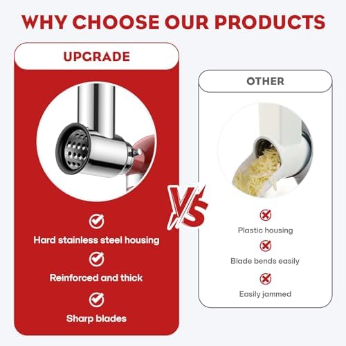 slicer shredder attachment for kitchenaid stand mixer are made of high quality stainless steel. Stainless steel blades provide excellent durability and cutting results, making it easy to handle a wide range of vegetable cutting needs.