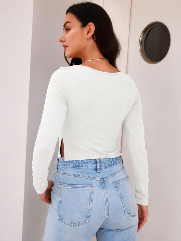 Trendy Queen Womens Long Sleeve Crop Tops Cute Sexy Going Out Y2k T Shirts Outfits for Women Basics Clothing Trendy Clothes