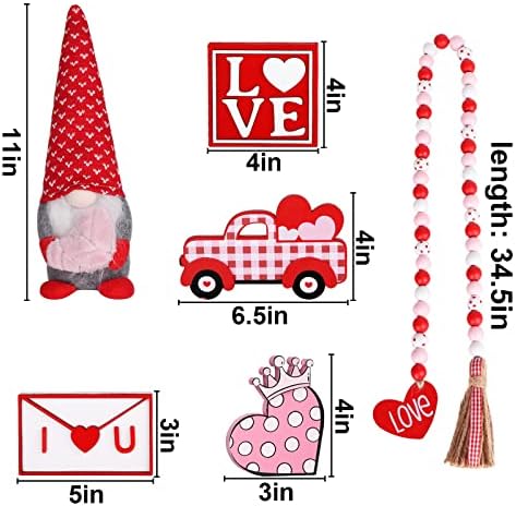 Treory Valentines Day Tiered Tray Decor 6pcs, Valentines Day Decor with Gnomes Bead Garland Wooden Heart Valentines Table Signs Valentines Day Decorations for The Home (Tiered Tray NOT Included)