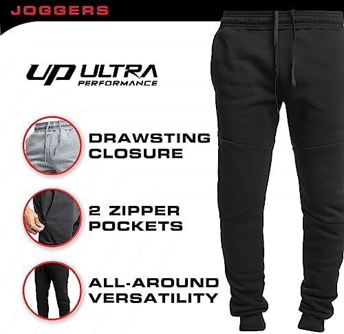 Ultra Performance 3 Pack Fleece Active Tech Joggers for Men, Mens Sweatpants with Zipper Pockets