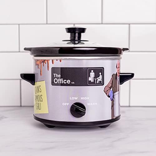 GREAT SIZE FOR THE OFFICE FANS: Great for wide variety of foods can be cooked in a slow cooker, including one pot meals, soups, stews and casseroles.POT LUCK PARTY PERFECT: Meatballs, Chili, Cheese Dip all work perfectly in this 2-quart slow cooker.CREATE GREAT MEALS: Effortlessly adjust heating, intensity and duration to achieve your desired results every time.REMOVABLE STONEWARE INSERT: Ceramic bowl can fit a whole chicken AND its easy to clean! Goes straight from pot to table.DETAILS: ETL Certified. UL listed. Aluminum housing features full-color wrap. Designed for 120v systems in the US, Canada, and Mexico.MAKES A GREAT GIFT: The Office Slow Cooker is the perfect way to bring pop culture cheer to any Dunder Miflin’s fan’s kitchen.