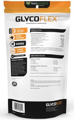 VETRISCIENCE Glycoflex 3 Clinically Proven Hip And Joint Supplement With Glucosamine For Dogs, 120 Chews – Vet Recommended Mobility Support Supplement With DMG, MSM, And Perna