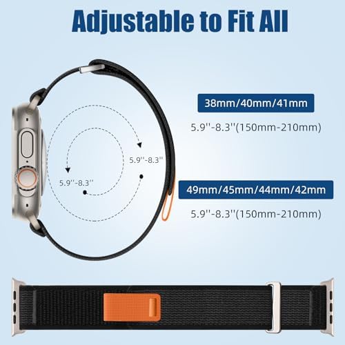 VNCAS Trail Loop Nylon Band Compatible with Apple Watch Ultra/ iWatch Ultra 2 Band 49mm 45mm 44mm 42mm 42mm 41mm 40mm 38mm Men Women, Trail Loop Watch Band for iWatch Series 9 8 7 6 5 4 3 2 1 Ultra/Ultra 2 SE