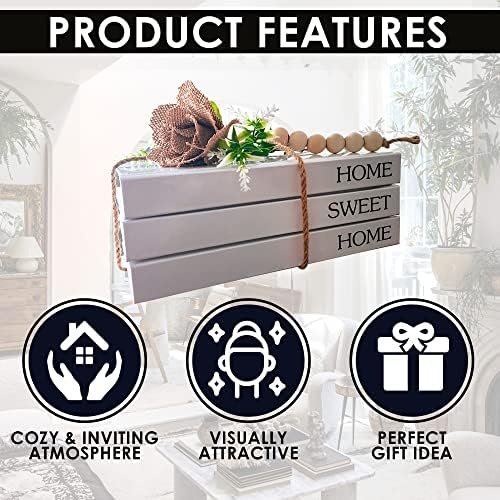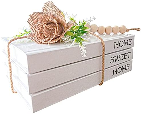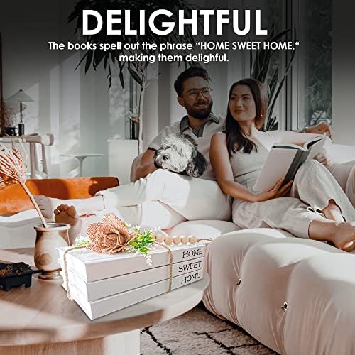 DELIGHTFUL – This charming book set includes three hardcover books with a personalized touch, each adorned with a lovely faux sprig of leaves and bound with twine and beads. The books spell out the phrase “HOME SWEET HOME,” making them a delightful