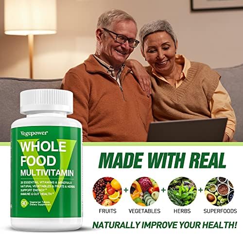 🌲Whole Food Multivitamin Plus+: VEGEPOWER whole food multivitamins packed with 26 essential vitamins and minerals to support whole-body health, plus 40+ organic fruits and vegetables for whole food nutrition and antioxidant support, all in just one daily multivitamin for your body to recognize and absorb the nutrients faster.
