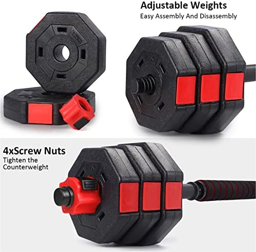 【Easy to Use】-Octagon shaped dumbbell plates are designed to prevent rolling and provide easier storage.The connecting rod is covered with foam to ensure comfortable grip, while dumbbells handle is coated with rubber to prevent easily slipping from hands.